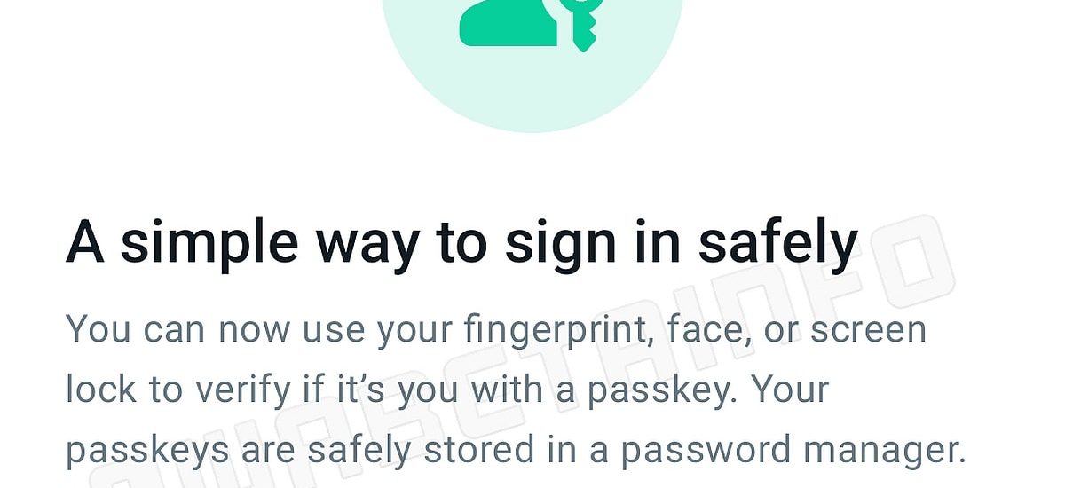 The new passkey feature is described as a “simple way to sign in safely” to WhatsApp in a screenshot shared by the feature tracker. This suggests that it could be used to help sign in to other devices via secure authentication on your primary device.