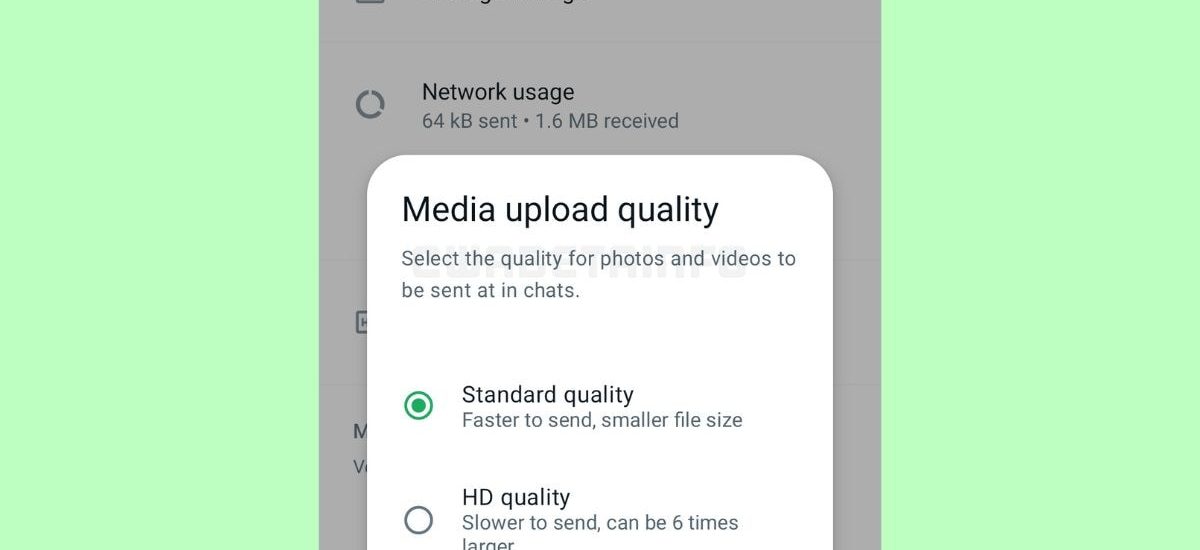 In a screenshot shared in the report, a new Setting option can be seen within the Storage and data menu. This new setting option is titled Media upload quality and it reportedly contains two options of Standard quality and HD quality. Once a user selects an option, the future uploads will follow the preference.