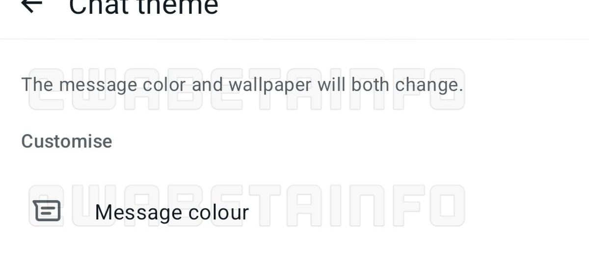 The leaked image doesn’t show any themes, presumably because they are still in development. However, it includes two options to customise the two elements mentioned above. Tapping on Message colour and Wallpaper will allow users to customise their chat theme.