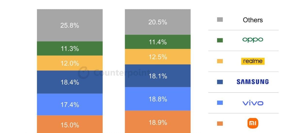 In the same criteria, Vivo attained the second spot with a 16.8 percent value share while Apple ranked third with a 16.3 percent share. The iPhone maker is expected to make a comeback in the next quarter, with the recent price reductions across its entire range of iPhone models being touted as a driving factor.