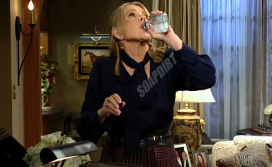 She’s living in fear that Jordan is going to pop up. So, her plan is to just keep taking sips of vodka until Jordan is caught. Then she can worry about fighting her addiction after she deals with Jordan. She truly believes no one will find out she’s still drinking on Young and the Restless.